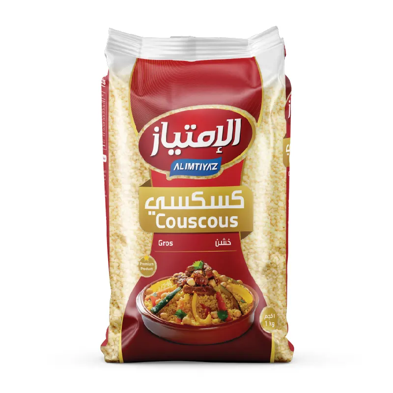 The complex manufactures AlImtiyaz couscous of different degrees of thickness: fine, medium gros, and gros.